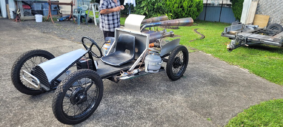 I purchased a 1922 Austin Seven rolling chassis, restored, lightened and altered it to be driven by a twin pulse jet rocket engine totally built by myself. Project is under construction.